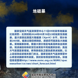 国家空间天气监测预警中心11日9时发布地磁暴红色预警: