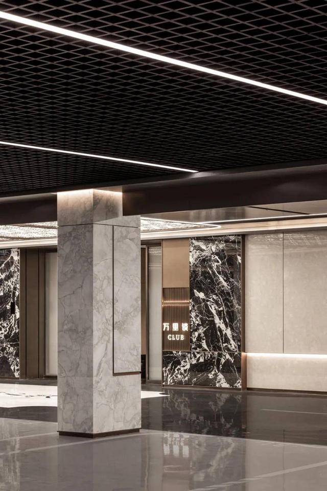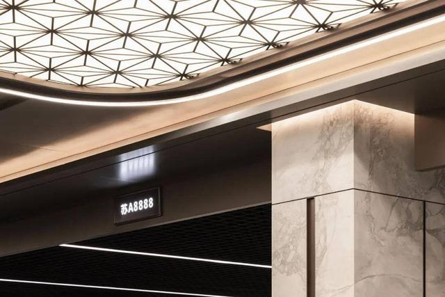 落客区顶部的金属花格搭配玉纹透光云石吊顶,拥有故宫同款三交六椀菱花元素,目之所及皆是奢美,让归家变成一种享受。
