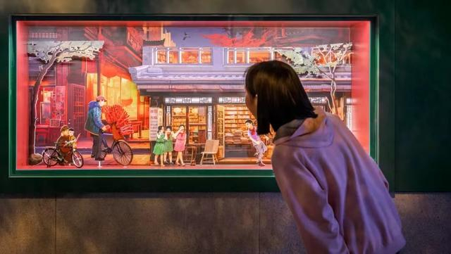 在田野上奔跑嬉戏、在街边吃糖葫芦、成为宇航员登上太空……以时间为线索,“墙上艺术馆”将不同时代具有独特性的童年体验和校园生活以情景化的方式加以表现。运用3D打印、数控切割等技术手段,橱窗的呈现融合雕塑、绘画、摄影、装置等多种展示形式,精彩生动,引人入胜。无论是家长、孩子还是其他的本地居民,大家在街道上走过时,都能看到自己曾经熟悉的童年生活,感受时代变迁。家长等候区的人行道上方还增加了雨棚,橱窗之间也增加了休闲座椅,方便行人停留小坐。