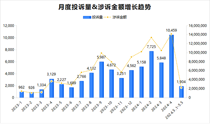 消费保平台4月收到的在线旅游投诉量激增至10,459件,较上月数量接近翻倍,涉诉金额逾1,414万。