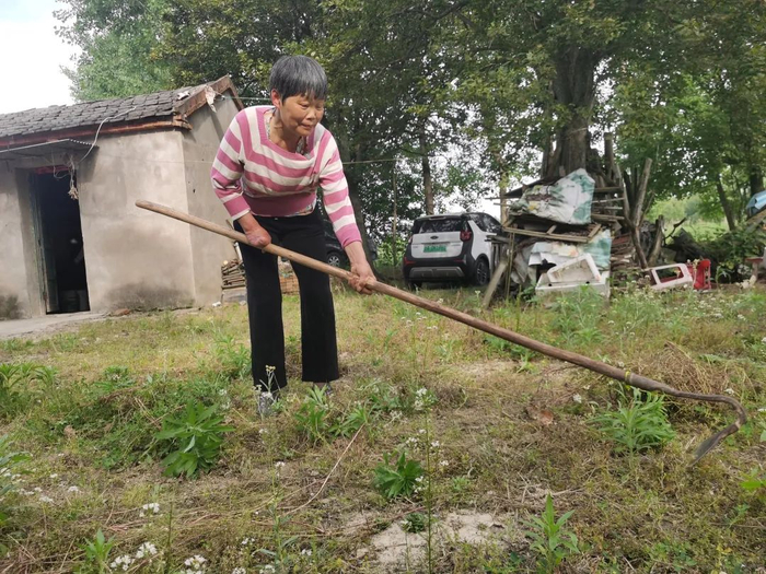 今年61周岁的朱守珍与土地打了一辈子交道。小时候一场持续高烧,让她失去了右手。1985年,她嫁给了同乡青年孔凡树。