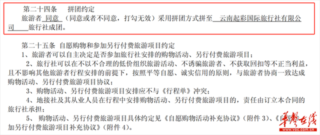 合同第二十四条,飞游国际将游客以拼团形式转交给了云南起彩。
