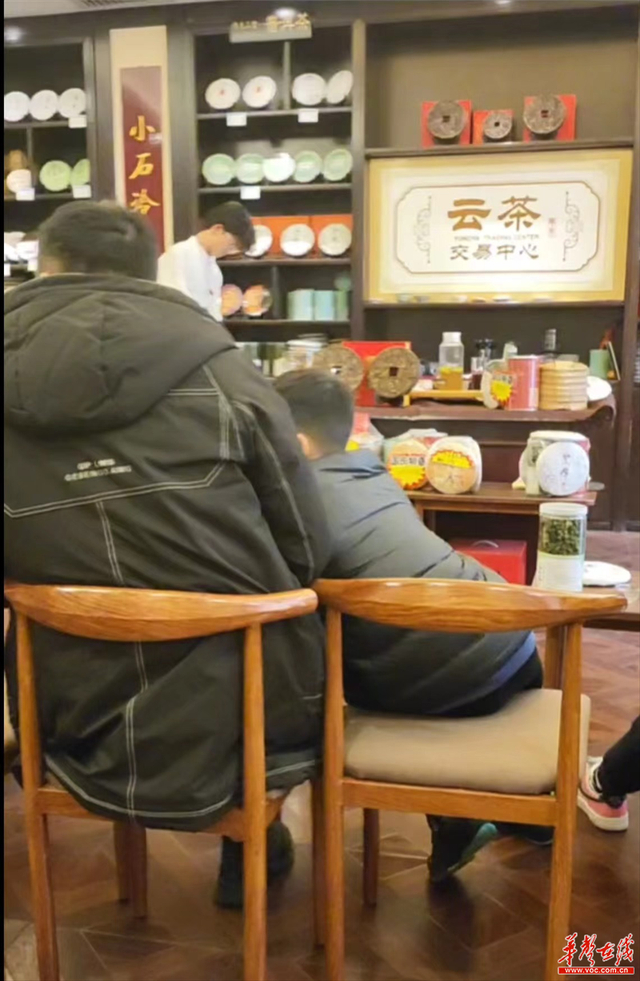 当天下午,导游将全团游客带至一个名为“云茶交易中心”的地方。下车之前,导游再次提醒乘客,“不求你买个一万两万,或者七千八千的,多多少少带上一点,这是一个态度问题。”