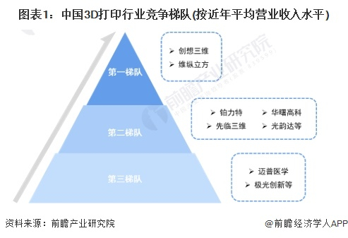 1、中国3D打印行业竞争梯队