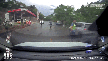 发帖网友称,事发地在云南省红河哈尼族彝族自治州。视频中能看到马路旁的加油站为“个冷加油站”,记者通过地图检索发现,红河哈尼族彝族自治州个旧市的G553国道旁确实有一加油站叫“个冷加油站”。