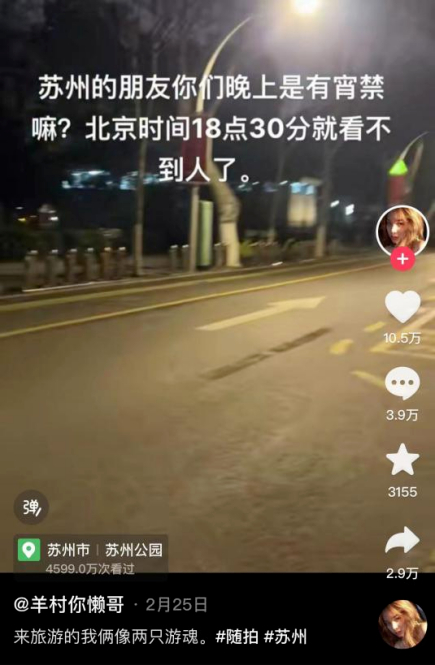 有外省的网友来苏州旅游,发现晚上7点不到,街边的店铺打烊的打烊,人该回家的回家,不由得大吃一惊,“难道你们江苏人都有宵禁吗?”