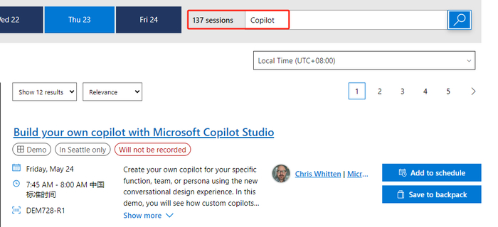 目前,微软Build年度开发者大会的会话目录总计显示了470个结果。如果筛选“AI”,那么你将会得到274个会话结果,而搜索“Copilot”则会得到137个结果。可以预见,除了AI之外,Copilot将是此次微软Build年度开发者大会的重点议题之一。