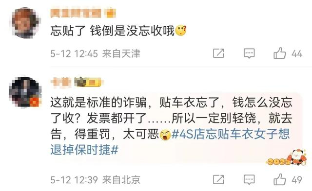 花1.7万元买了“皇帝的车衣”?4S店称忘贴了,女子想退保时捷