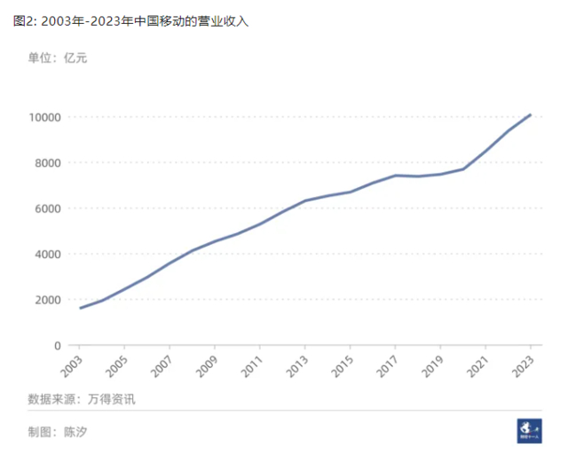 电信运营商提供的服务是日常必需,随着生活和生产的数字化程度提升,通信服务的需求会稳步上升。从2003年开始的20年里,中国移动的营业收入仅在2018年同比微减了0.5%。