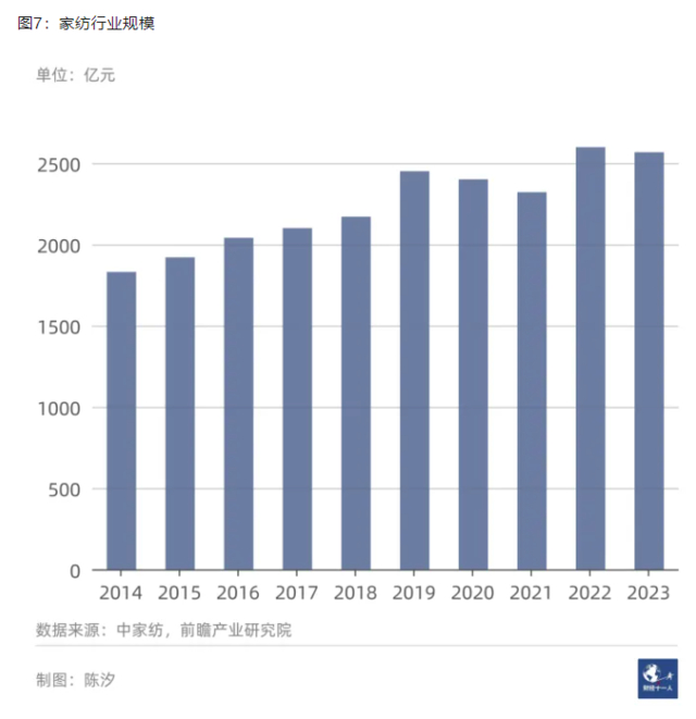 图7显示,家纺行业的规模仍在缓慢增长。但是家纺是一个非常分散的行业,而且集中度提升极其缓慢。