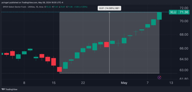 公共事业板块突然成为美股最热门的板块。