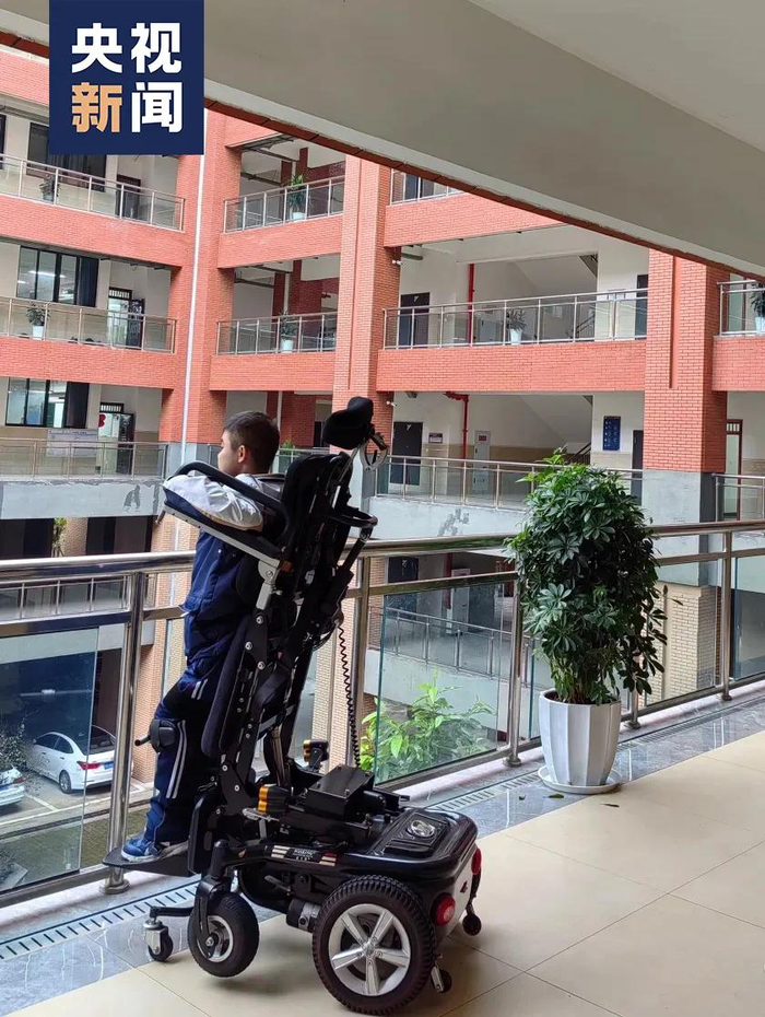 每天起床前和睡觉前,周朝喜要给儿子做肢体拉伸;课间活动时间,罗睿燊也积极用站立轮椅进行肢体训练;有空时,周朝喜还要督促儿子完成呼吸训练……如此日复一日,两人从容地并肩作战。