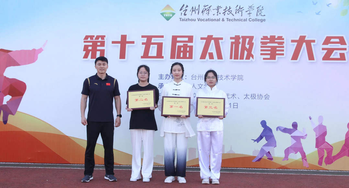 传承太极文化,太极拳融入体育课堂教学。太极拳是一项蕴含中国古代哲学思想、兼具修身养性功能的传统体育项目,是中国传统文化与体育运动的完美结合。太极文化要求形、神、意、气的统一,修身与技艺的统一,与台州的“和合文化”和学校“和圆文化”的核心思想高度吻合。从2003年起,学校就把太极拳作为传统文化进校园的有效载体和体育教学的主要内容,把体育课堂作为传承太极文化的主阵地,大力弘扬太极文化,积极传承太极精神,凸显太极拳文化育人价值,发挥其在以体育人中的重要作用,以“拳”养身、以“文”养性,激励台职学子强健体魄、增强体质的同时,增强文化自信,让博大精深的太极文化得以传承、发扬光大。太极拳项目为学校首批校园文化特色品牌项目;2010年该项目被列入“浙江省高校首批体育特色项目”;2013年学校被列为第二批“浙江省非物质文化遗产传承教学基地武术(太极拳)”;2013年学校被评为“浙江省优秀传统文化教育普及活动先进集体”。