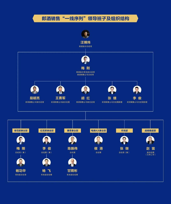 其中“团队升级”已有迹象,在龙马郎事业部、顺品郎事业部合并设立郎酒兼香事业部后,郎酒销售“一线序列”领导班子及组织结构也全新出炉,其中原顺品郎事业部总经理杨飞,调任红花郎事业部常务副总经理;