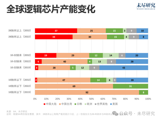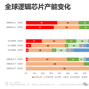基于对未来的资本支出的预测,SIA预测了未来的产能占比。届时,美国本土先进制程产能有望达到28%,仅次于中国台湾的47%,高于世界其他地区之和。目前,美国本土先进制程产能占比为0。