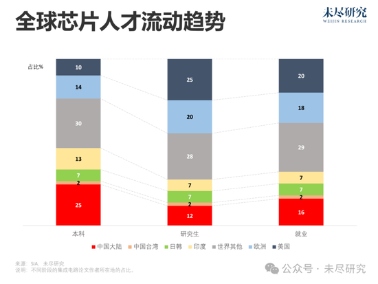 尽管美国成功的研究生教育,持续吸纳全球优秀本科人才,尤其是中国与印度,但到了就业阶段,美国仍有5个百分点的人才回流生源国,主要就是中国。如果中国留学生前往美国遇到各种障碍,或者加速回流,将进一步影响美国芯片人才的供应弹性。