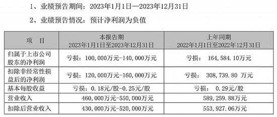 东旭光电预计2023年亏损10亿元至14亿元