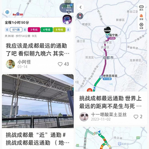 小红书上有一个关于“成都最长通勤”话题,不少成都打工人,纷纷发起挑战,晒出自己的通勤路线。