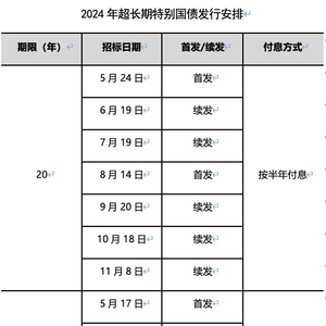 财政部公布超长期特别国债发行时间表,涉及期限20年、30年、50年