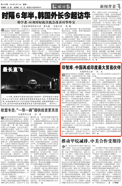 印度报业托拉斯12日报道称,根据印度智库“全球贸易研究计划”的数据,2023—2024财年,中国超越美国成为印度最大的贸易伙伴。报道称,在2023—2024财年,中印贸易额达到了1184亿美元,印度对华出口和进口均实现了增长,其中出口增幅达到了8.7%。