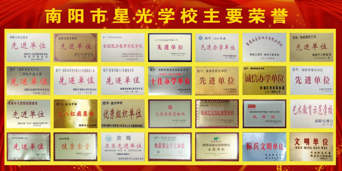 35年名校——星光学校是经教育局批准的集幼儿园、小学、中学为一体的民办寄宿制学校,历经35年的积累和沉淀,具备了独有的办学特色和优势,把“对每个学生的培养超过家长和学生的预期”作为办学目标,让事实说话,经得起检验,赢得了家长和学生信任,在南阳民办教育园地里独树一帜,2024年秋期高中部成立更是锦上添花!
