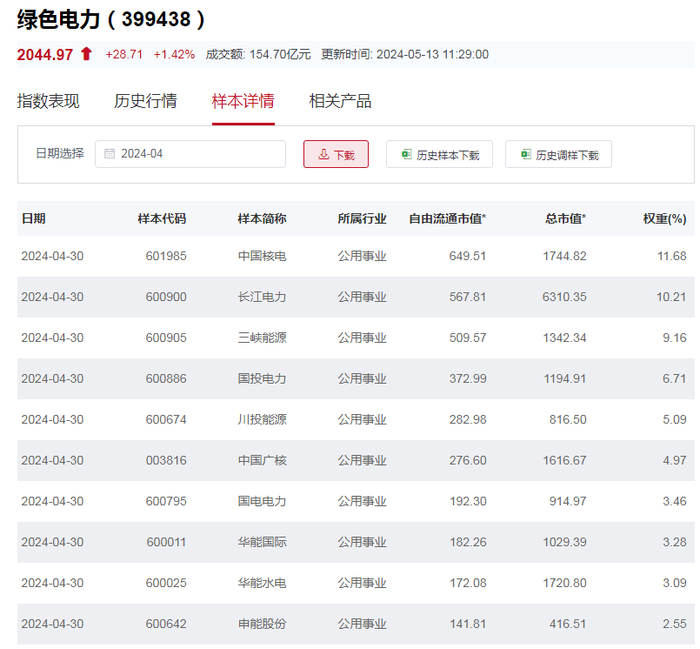 国证绿色电力指数重仓股