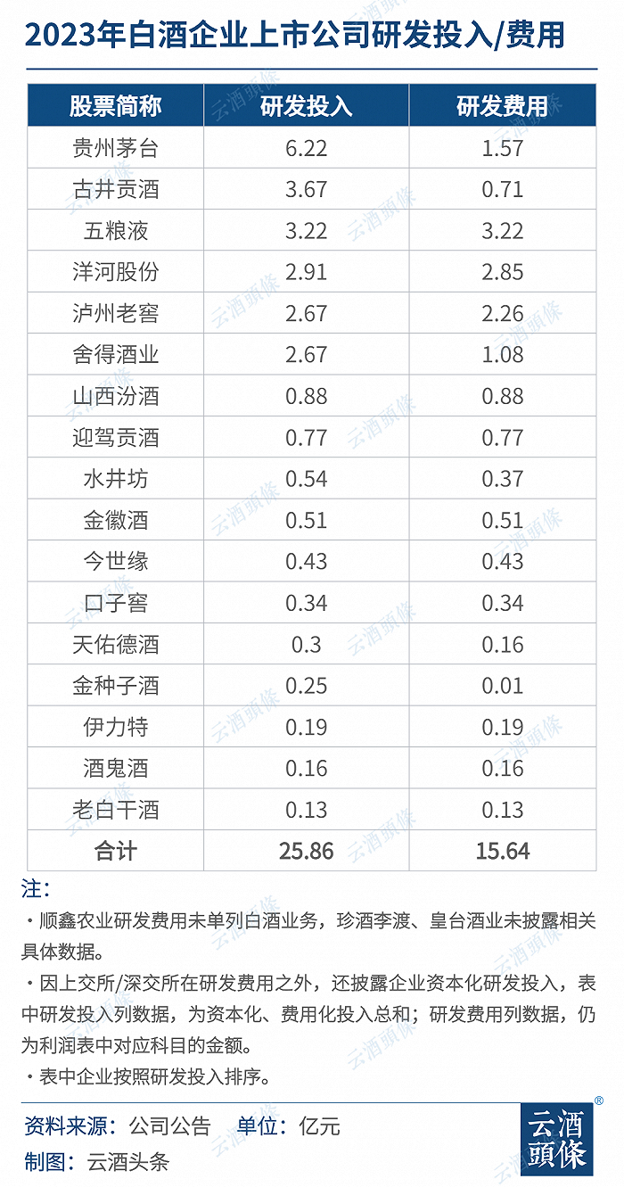 此外,云酒头条梳理近段时间发布的2023年白酒上市企业年报发现,从各企业间的研发费用数据中,或许能窥见几分“科技浪潮”的发展趋势。