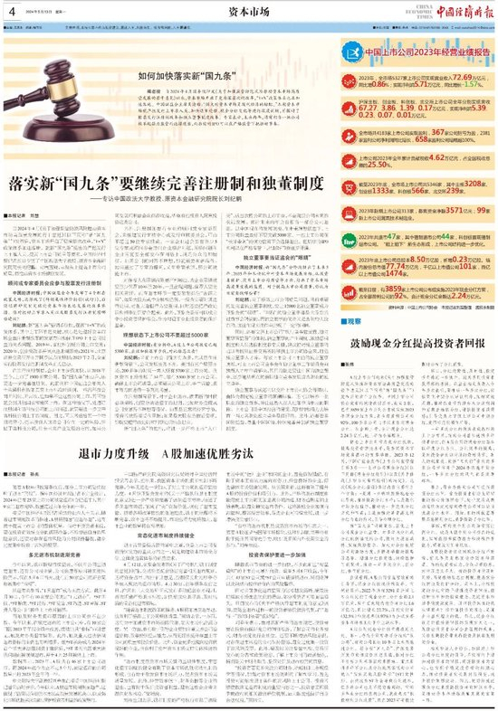 刘纪鹏:落实新“国九条”要继续完善注册制和独董制度