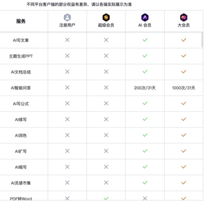 WPS现共有两种会员:WPS超级会员和WPS超级会员Pro版。未来整合了AI功能后,会员体系将升级为3种:WPS超级会员、WPS AI会员和WPS大会员,后两种可以使用AI权益。