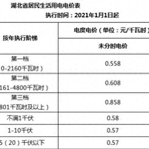 湖北省居民电价仅执行阶梯电价,三档的电度电价分别为0.558元/千瓦时、0.608元/千瓦时和0.858元/千瓦时。上海市等地的居民电价则在阶梯电价的基础上叠加了分时计价。