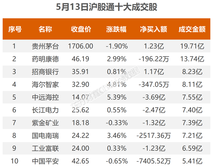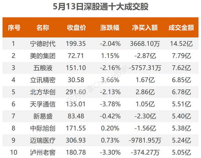 5月13日北向资金最新动向(附十大成交股)