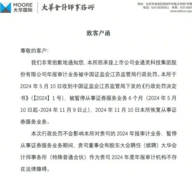 彼时,关于大华会计师事务所被罚的消息四起,市场猜测纷纷作为金通灵年审机构的大华所可能会被暂停证券资质或被证券监管部门实施实质性禁入措施。