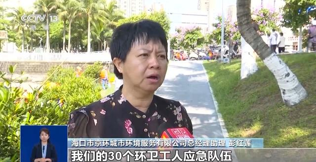 海口市京环城市环境服务有限公司总经理助理 彭红莲:我们的30个环卫工人组成应急队伍,过来进行打捞。