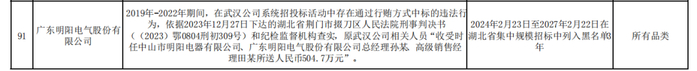 明阳电气因行贿被列入国网湖北招标黑名单3年