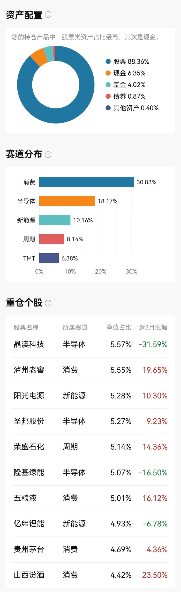 历史数据是重要的投资参考因素,您可以通过收益回测和资产穿透等功能,基于当前持仓组合,回溯过往业绩表现,也可深入揭示当前持仓组合的资产配置、行业分布、重仓个股、重仓债券等重要信息,为投资决策提供支持