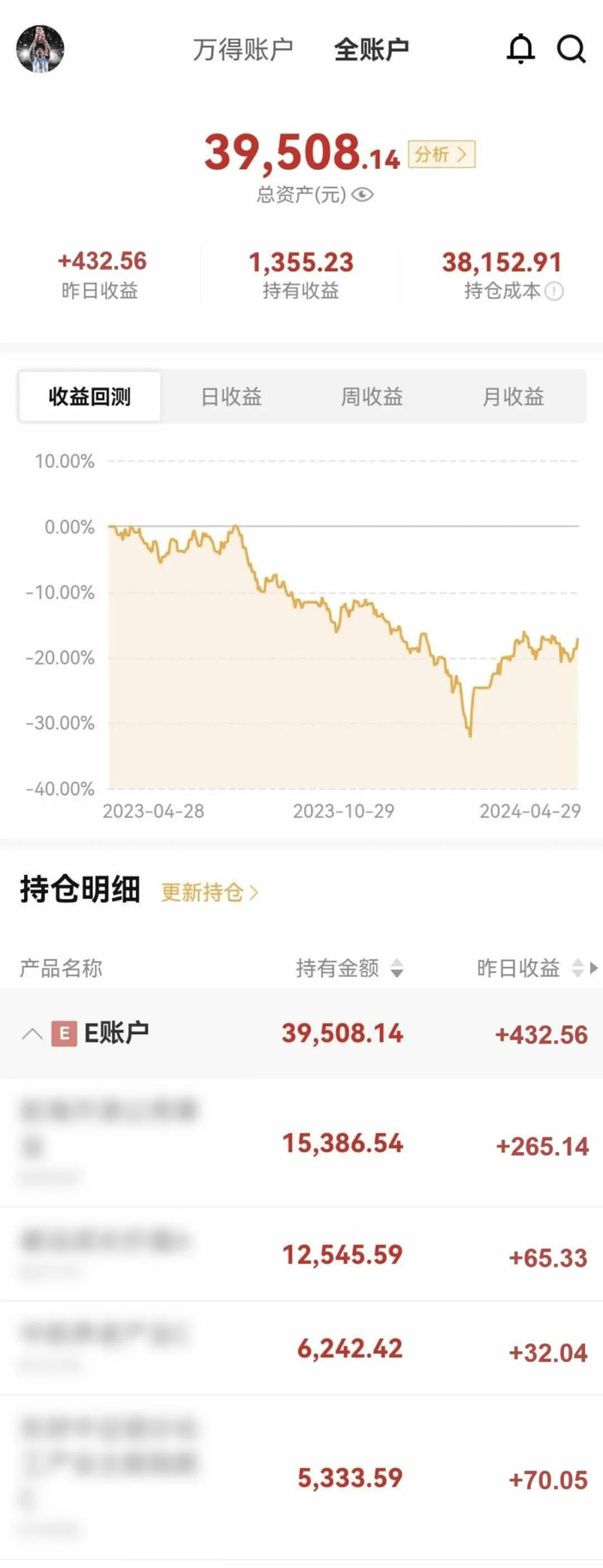 需要提醒大家的是,市场短期是随机、不可预测的,任何投资都是有风险的。万得基金尽力为投资者提供权威、准确、完整、及时的信息,但我们无法对这些信息作出任何保证,“全账户”功能旨在提供信息参考,投资者投资基金应遵循“买者自负、卖者尽责”原则。
