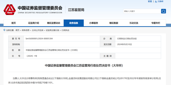 1、2024-05-13中国证券监督管理委员会江苏监管局行政处罚决定书(大华所)〔20241