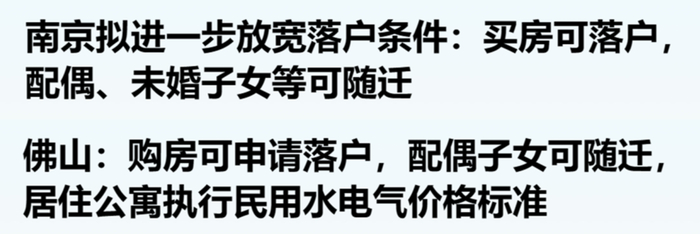 先是南京、佛山等地出台新政,拥有合法稳定住所(即取得合法产权住房)人员,可以申请户口迁入。