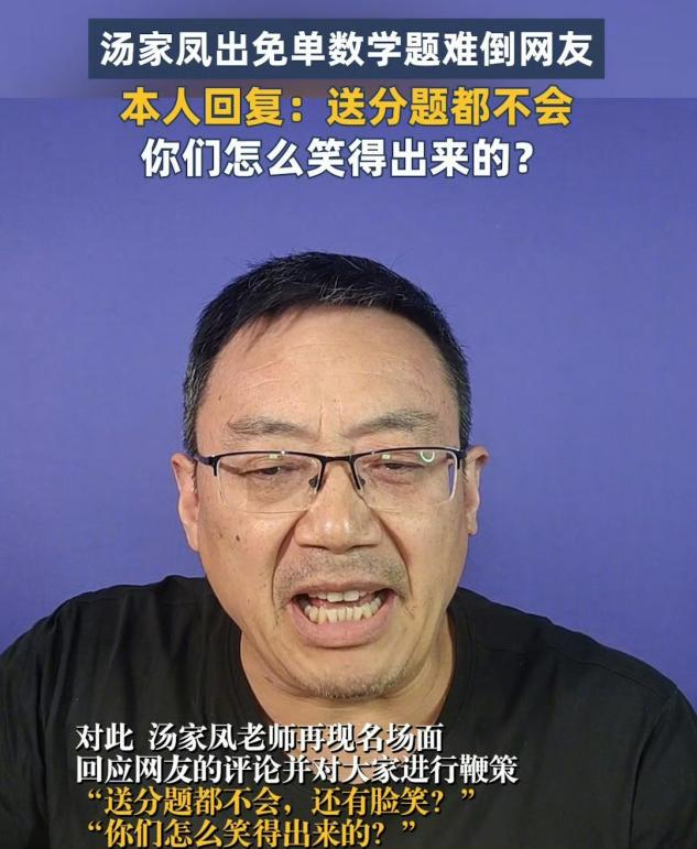 比如,考研名师汤家凤,针对淘宝免单数学专场,向网友们表示:“送分题都不会,你们怎么笑得出来?”