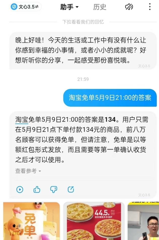 更有网友直接询问文心一言,淘宝免单的答案是多少,不过AI猜错了一位数字。