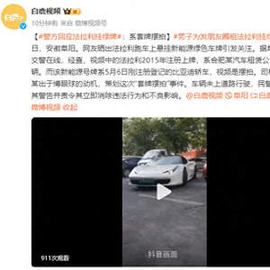 近日,安徽阜阳。网友晒出法拉利跑车上悬挂新能源绿色车牌引发关注。据阜阳公安交警在线,经查,视频中的法拉利2015年注册上牌,系合肥某汽车租赁公司的车辆。而该新能源号牌系5月6日刚注册登记的比亚迪轿车,视频是摆拍。司机孙某某出于博眼球的动机,策划这次“套牌摆拍”事件。车辆未上道路行驶,民警依法对其警告并责令其立即消除违法行为和不良影响。