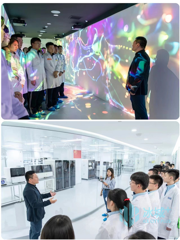 孙老师带领同学们探索实验室,进行了对消化道肿瘤和基因检测的基础认知。同学们学习了基因技术在“冰雪神兽”研究中的重要进展及意义。科普达人、华大集团CEO尹烨与学生们面对面交流。在5D展示区、实验室及展板展示区,尹烨和同学们面对面交流,做生命科学前沿性和工程化介绍及科普互动。