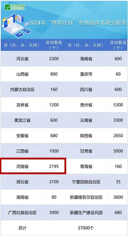 一起来看2024年“特岗计划”各地设岗名额分配表↓↓↓