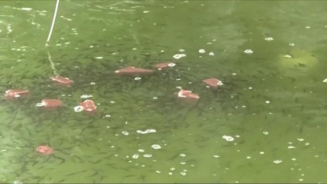 于洪波介绍,小苗仔鱼出来以后,对开口饵料要求也比较高,因为它的嘴比较小、口裂比较小。现在他们有一套比较完整的孵化技术了,孵化率、出生率各方面都挺高的。