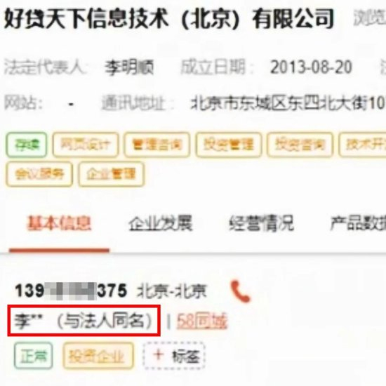 “这叫规避法律风险,我们不能展示全名,展示全名侵犯个人隐私。”该人员解释,“但我们打了标签‘与法人同名’。”