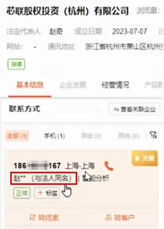 励销云也在出售企业家个人信息。登录励销云后,随机输入参数,每经记者设定检索名称中含特定词语的企业,系统为记者筛选出近20万家企业。点击查看详情,只见屏幕右侧出现了多个手机号。
