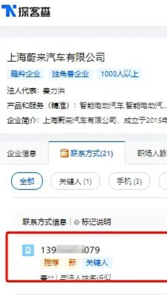 每经记者从“中国上市公司品牌价值榜”中随机挑选了部分知名上市公司,又补充了一些未上市的知名企业,在探客查上简单搜索,就发现了十位知名企业家的手机号在售,分别是:农夫山泉创始人钟睒睒、牧原股份实控人钱瑛、森马服饰创始人邱光和、荣盛集团董事长李水荣、蓝思科技董事长周群飞、新尚集团董事长唐立新、蜜雪冰城实控人张红甫、钟薛高创始人林盛、喜茶创始人聂云宸、蔚来汽车联合创始人秦力洪(为保护个人隐私,本文将展示的手机号打码)。