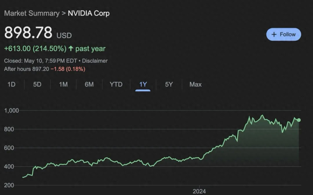 不过,巨头跌倒后很快就爬了起来,如今再度逼近900美元,今年以来涨幅近90%。早在今年3月时,就有几位美股基金经理对笔者提及,1000美元以前听起来很夸张,但近在眼前了。