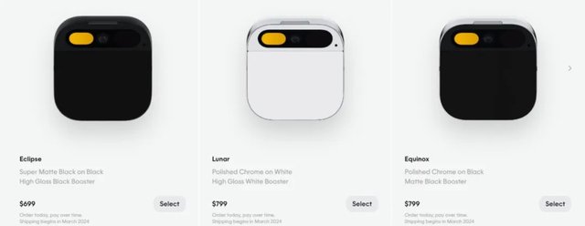 由于AI Pin上有搭载1300万像素的摄像头,因此可搭配不同的手势来指定AI Pin进行不同的功能运作,甚至是检测食物营养素等功能,这些都是目前传统穿戴式装置做不到的功能。比起笨重且容易“社死”的VisonPro头盔,这个Pin要轻巧得多。