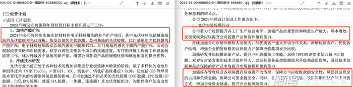 福斯特与海优新材经营计划对比 资料来源:公司公告